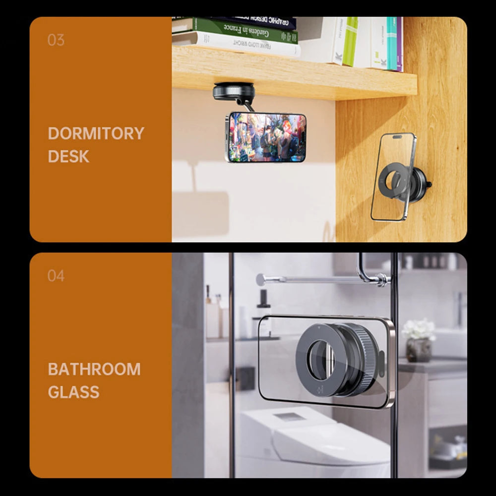Mounting Type: Reusable vacuum suction cup + military-grade magnetism